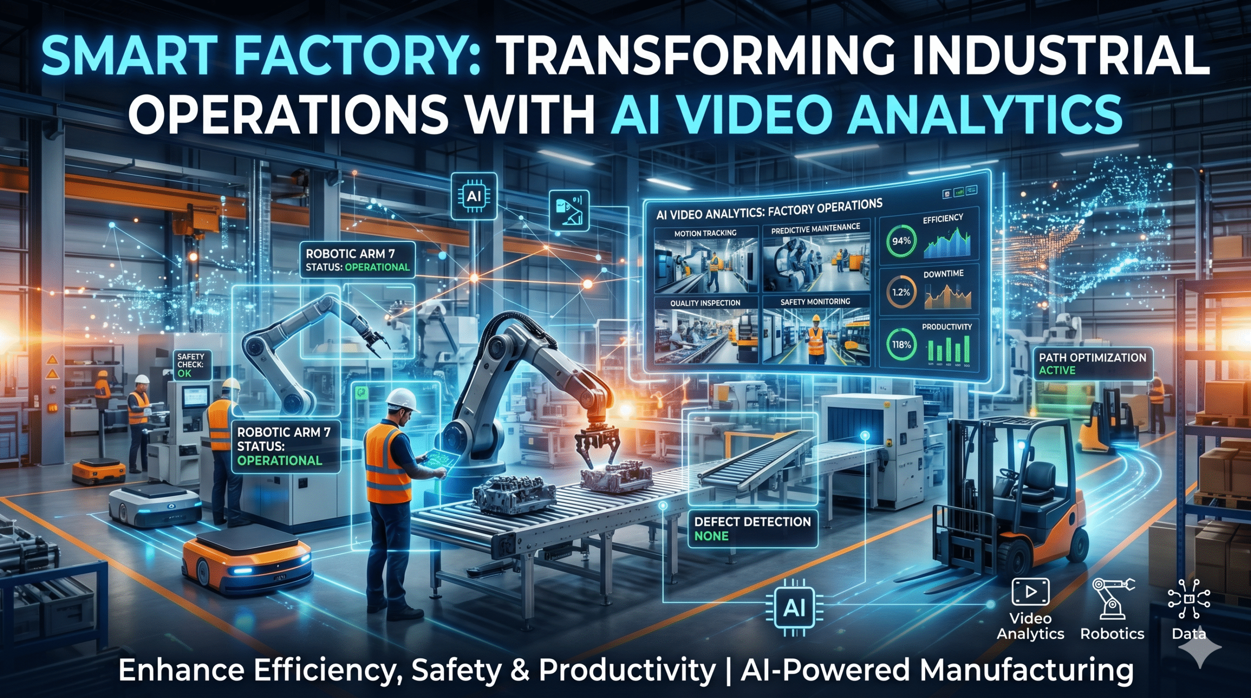 The concept of the smart factory is revolutionizing industrial operations by combining automation, connectivity, and intelligence. AI video analytics is a key enabler of this transformation, providing real-time insights, improving safety, and enhancing efficiency.